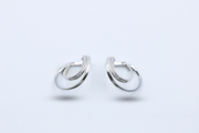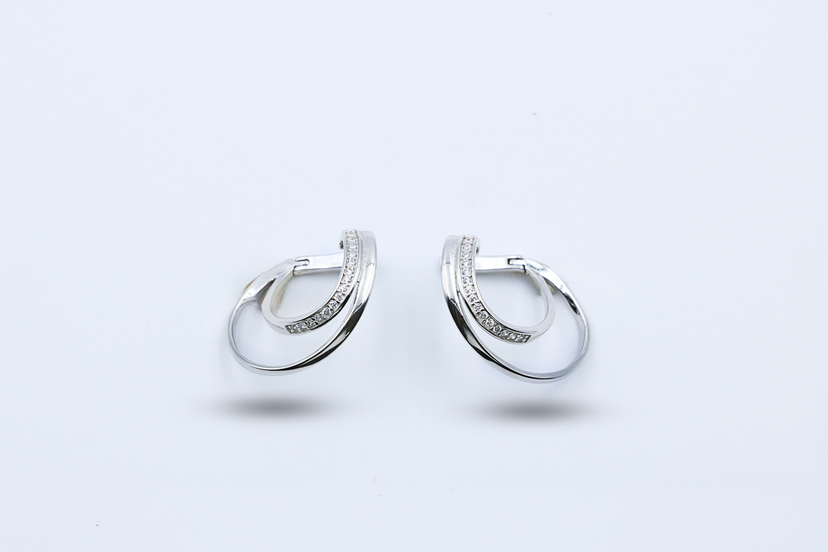 Inspiration: Soft, overlapping arcs of silver flow around the ear, creating a modern loop that feels both sculptural and effortless. The pavé zircon line adds just the right hint of shimmer, making these hoops perfect from workdays to wine nights.
