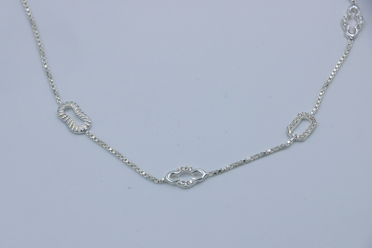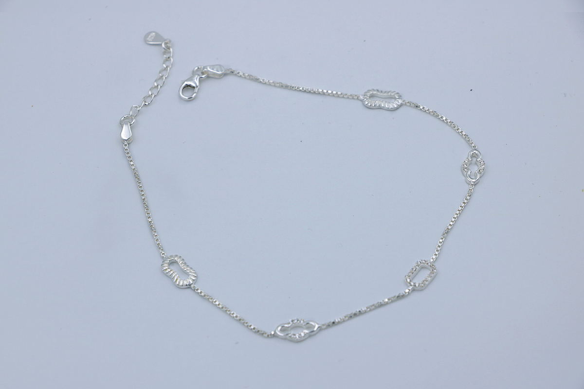 Inspiration: Airy silver anklet with open cloud motifs, drifting in ethereal lightness and boundless poise. The interlocking shapes evoke dreamy skies, ideal for a touch of celestial whimsy in daily grace.