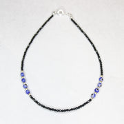 Classic black beads meet vibrant blue evil eye charms, creating a modern talisman of style and protection. This anklet blends tradition and trend, letting every step radiate confidence and calm.