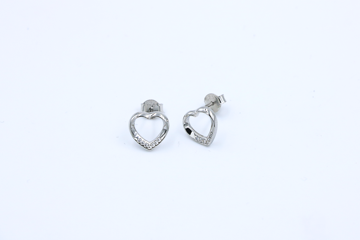 Inspiration: Open heart silver studs framed with pavé zircons whisper tender affection and luminous joy. Their intertwined outline symbolizes boundless love and delicate strength for heartfelt everyday moments.