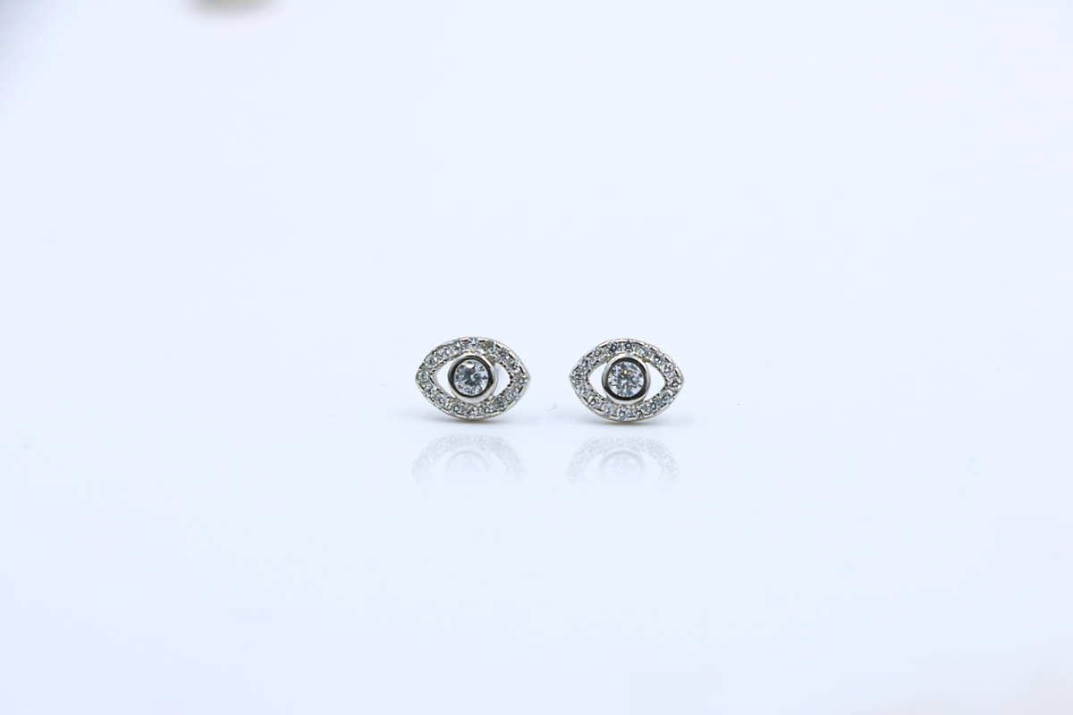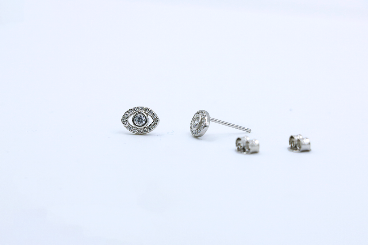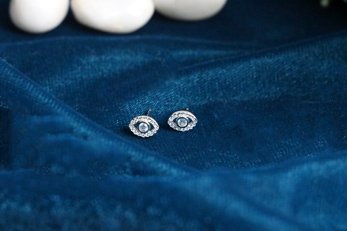 Inspiration: Delicate silver evil eye studs gleam with protective zircon allure, channeling vigilant grace and mystic poise. Their almond motif symbolizes watchful serenity and inner strength for subtle daily empowerment.
