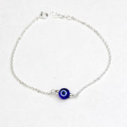 Sleek and simple, this bracelet centers a deep blue evil eye bead to symbolize protection and peace. Its refined design brings both style and serenity, perfect for a mindful touch to every day.