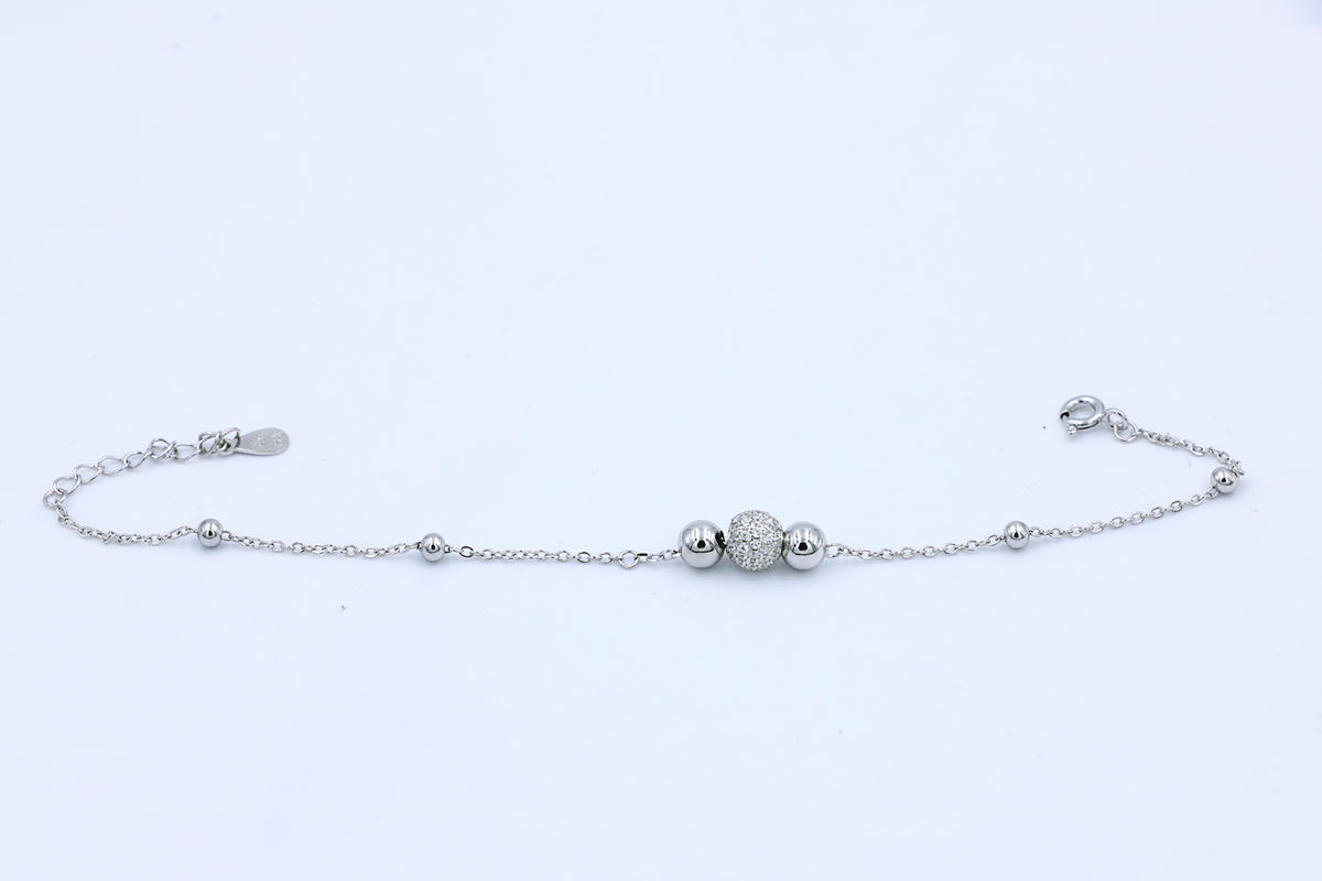 Inspiration: Delicate silver beads punctuate a dainty chain, crowned by pavé zircon spheres that glow with subtle opulence. This layered rhythm symbolizes joyful gatherings and understated celebration for effortless charm.