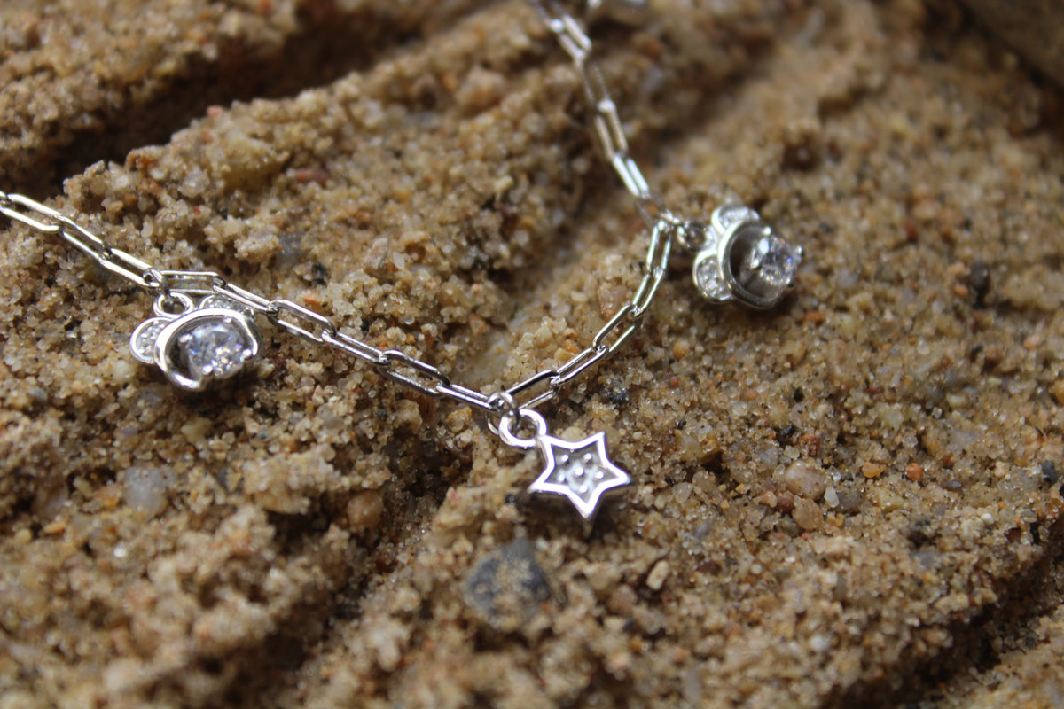 Playful silver charms twinkle with every move, capturing the magic of starry nights and heartwarming moments. This bracelet blends whimsy with elegance, reflecting dreams and cherished memories on the wrist.