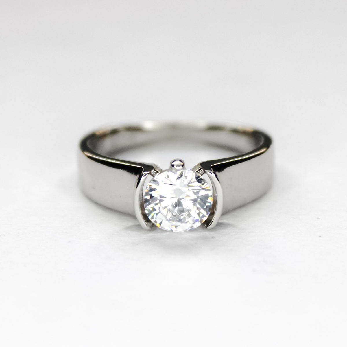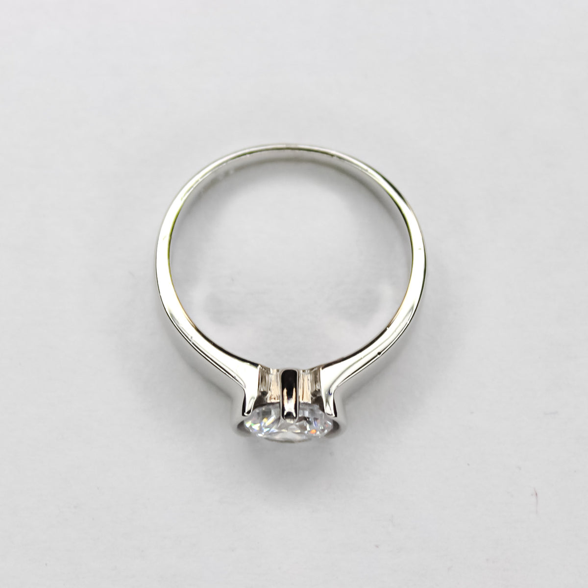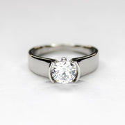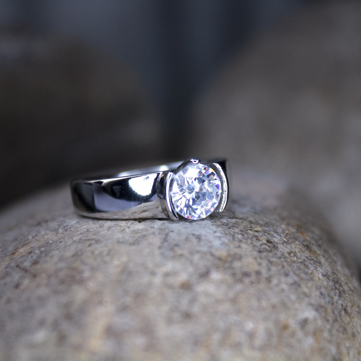 A bold single crystal anchors this minimal ring, radiating clarity and strength. Its linear band design reflects directness and certainty—perfect for those who carry purpose in every step.