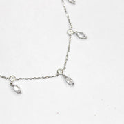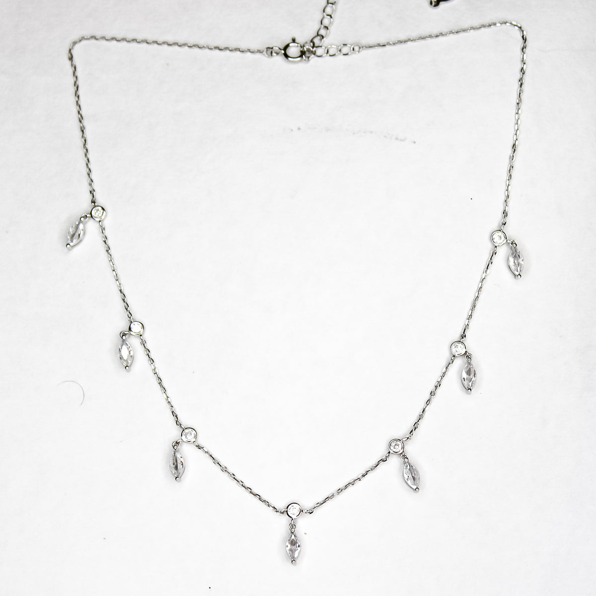 • Choker necklace chain with bezel-set round and marquise-shaped white zircons