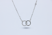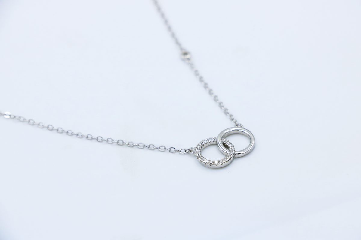 • Interlocking ring pendant (one plain, one pavé zircon)