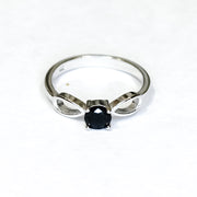 Centered with a round-cut black zircon, flanked by sculpted silver curves