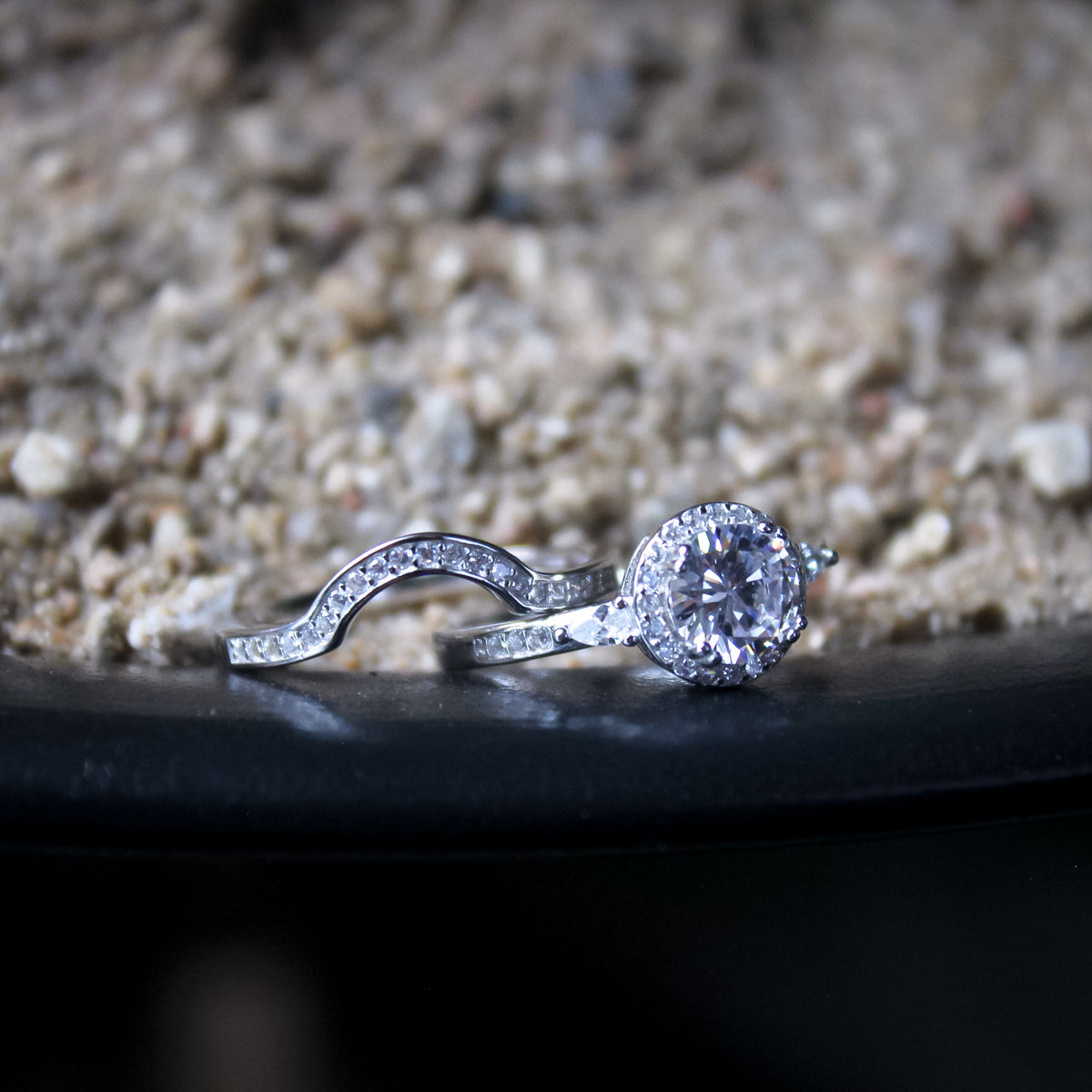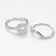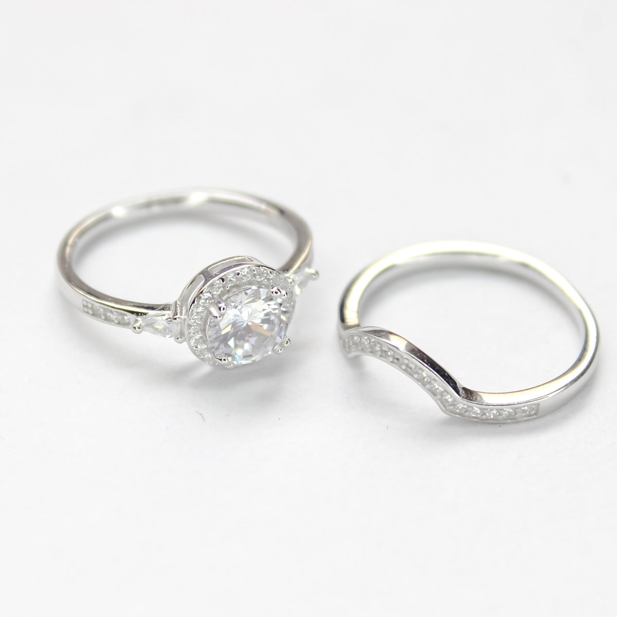 A luminous halo encircles the heart of this ring set, blending romance and grandeur in every detail. Designed for moments that deserve celebration, it echoes everlasting devotion and modern elegance.