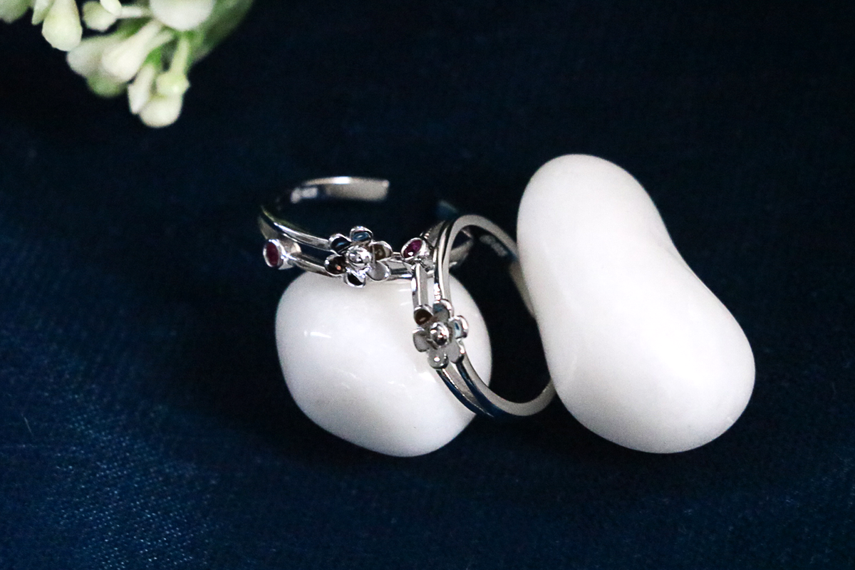 Design: Adjustable open band with petite flower accents