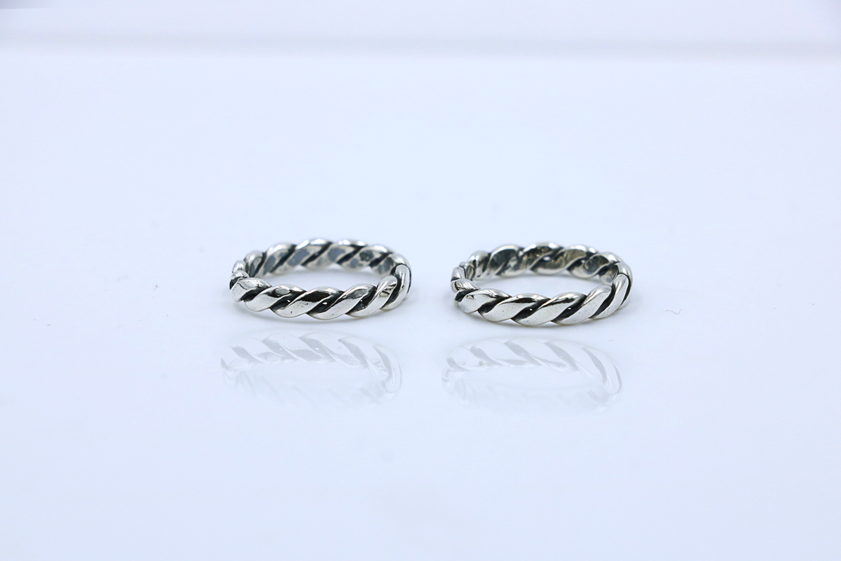 Inspiration: Twisted silver rope forms a spiraling band that opens for fluid fit, radiating dynamic energy and sculpted grace. This design channels rhythmic vitality, enhancing every step with textured allure.