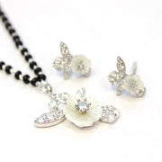 A bloom of sparkling petals and crystal leaves, this mangalsutra set embodies modern romance. It’s a tribute to love’s gentle beginnings and the promise of beautiful journeys together.