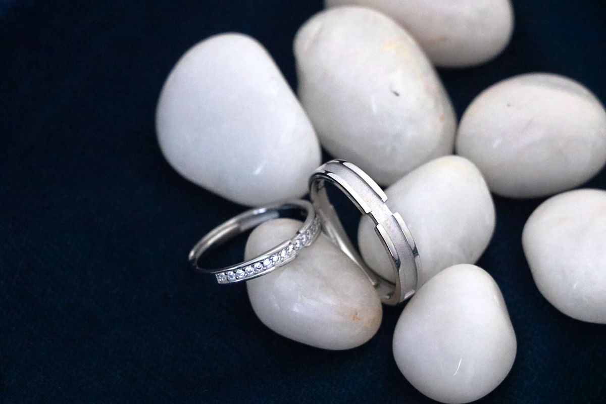 Inspiration: Modern, minimal, and deeply intimate, these twin bands celebrate two distinct souls walking one shared path. Their clean silver lines and subtle sparkle capture the quiet confidence of everyday love.