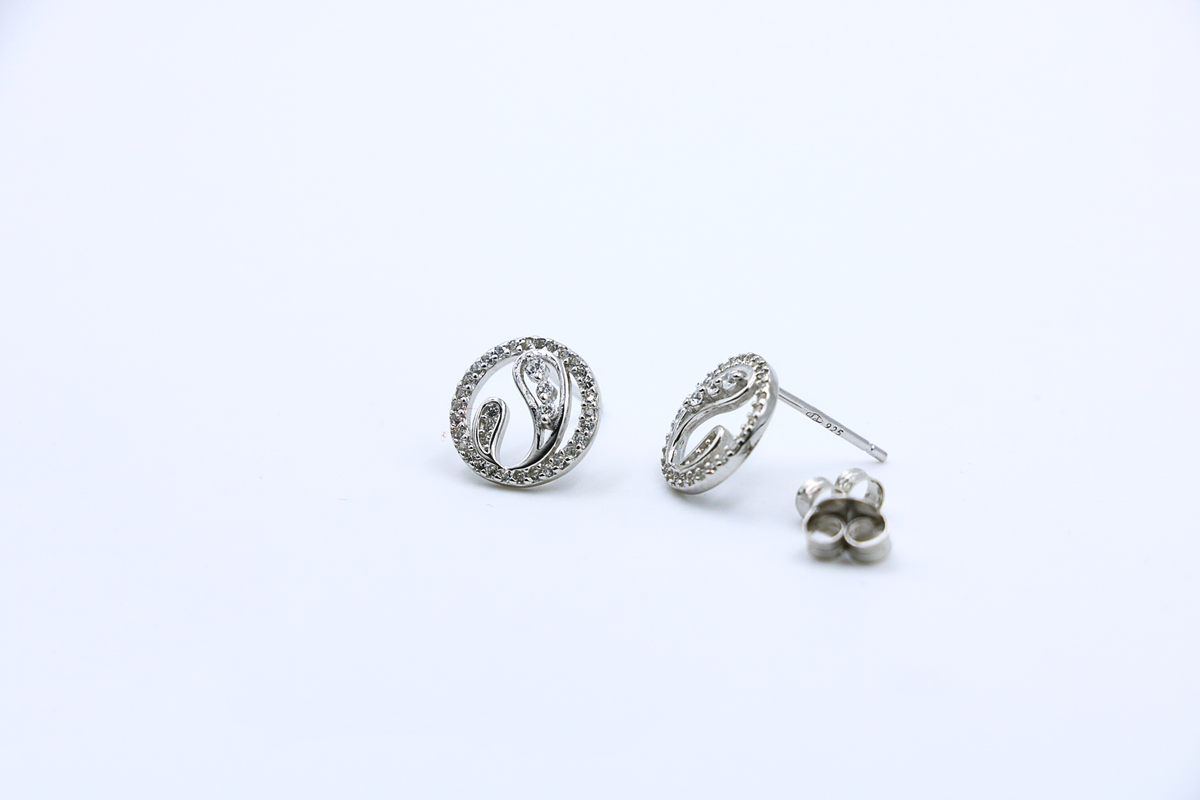 Inspiration: Graceful silver circles embrace flowing yin curves pavé-set with zircons, blending serenity and motion. This harmonious motif symbolizes inner balance and fluid elegance for poised everyday poise.