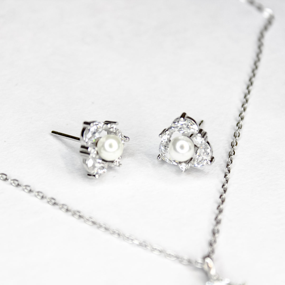 Classic pearls nestle in sparkling floral halos, radiating elegance, innocence, and fresh beginnings. This set brings together the timeless charm of pearls and the brilliance of crystal petals for a look both graceful and captivating.