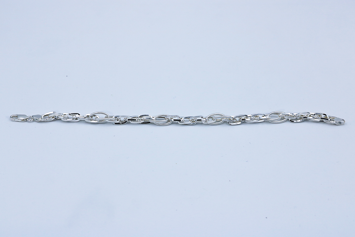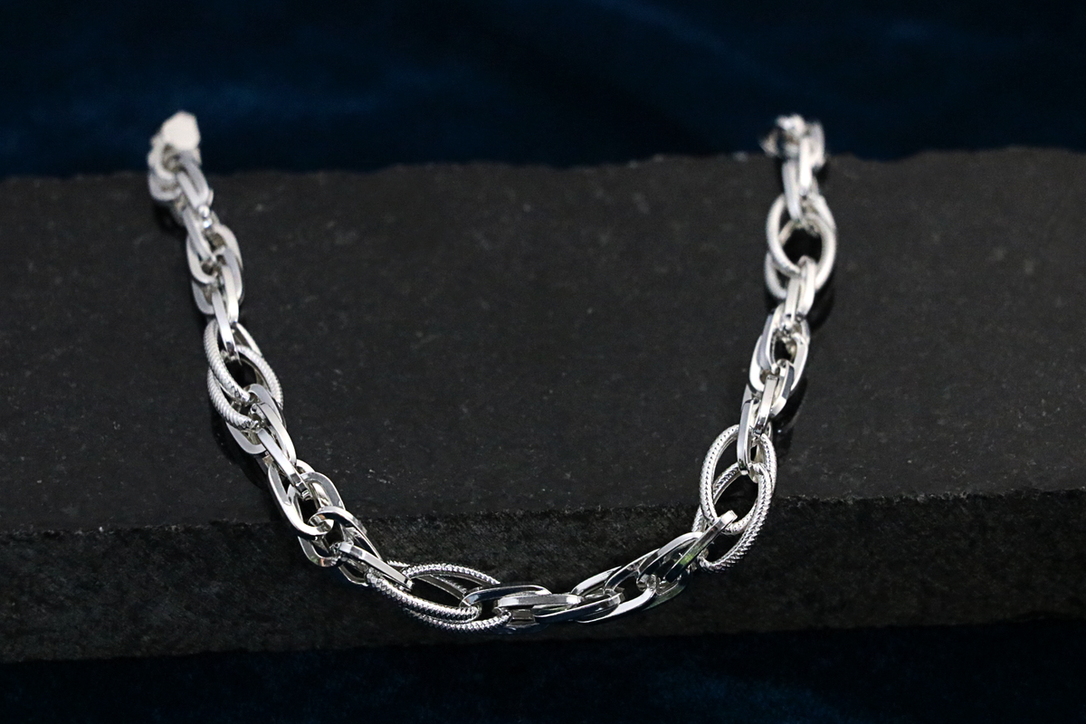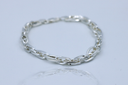 Inspiration:Sleek, elongated links in pure silver define this gents bracelet, blending fluidity with a sharp, elongated profile for understated dominance. It captures the essence of forward momentum and resilient grace, suited for the visionary man navigating life's bold turns.
